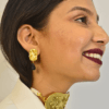 Introducing our exquisite Rectangle Boota Earstuds with Latkan, intricately designed with delicate flowers and leaves embossed throughout, capturing the essence of a Mughal garden. Each floral detail and leaf pattern reflects the serene beauty of the garden, making this jewellery not only a statement piece but also a timeless tribute to historical elegance. Perfect for those who appreciate heritage-inspired jewelry, these earstuds add a touch of regal charm to any ensemble.